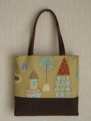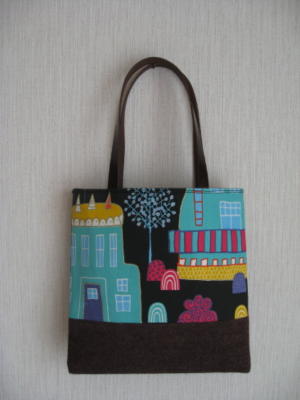 北欧生地(ヴィレッジ)を使用、持ち手は革を使用しています。