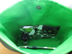 内側には携帯・小物ポケット 反対側にファスナーポケット