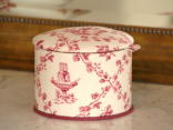ふたつき丸箱/4200yen フランス直輸入の生地を使っています。 鍵など 散らかるものを入れて。 |