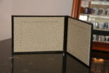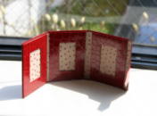 携帯用写真アルバム/2500yen フランス直輸入の紙を使っています。5× 3.5cmくらいの写真が3枚入れられま す。 |